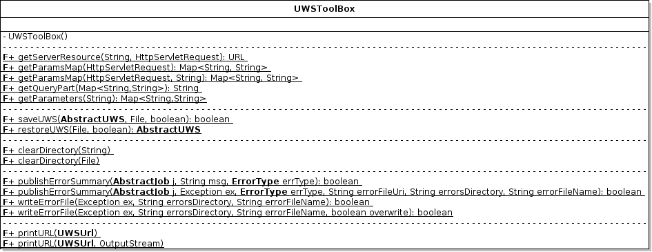 The class UWSToolBox gathers several usefull functions. All of them are static, so you don't need to create an instance of this class. Some of them have already been used in the previous sections of this tutorial: